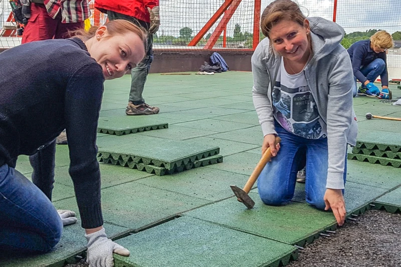 Einfache Verlegung: Mit wenig Aufwand lassen sich Fallschutzplatten schnell und unkompliziert auf befestigten und unbefestigten Untergründen verlegen.