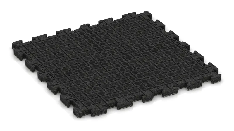 Måtterne er fremstillet af PU-bundet gummigranulat og fås i tykkelser på 3, 4 eller 5 cm. De absorberer stød pålideligt, reducerer vibrationer og dæmper støj. Led, sener og ledbånd aflastes mærkbart, mens underlaget beskyttes effektivt.