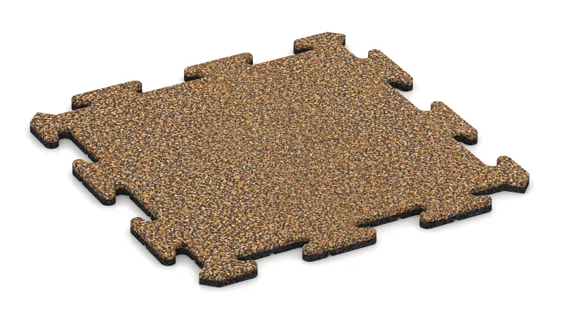 Gulvflisen er vejrbestandig, frostsikker og UV-stabiliseret. Den bevarer sin elasticitet og funktion både i varme somre og kolde vintre. Som alle gulve af gummigranulat ældes materialet naturligt, men uden at miste sine egenskaber. Resultatet er et sikkert, komfortabelt og lydsvagt altangulv, der holder i mange år.