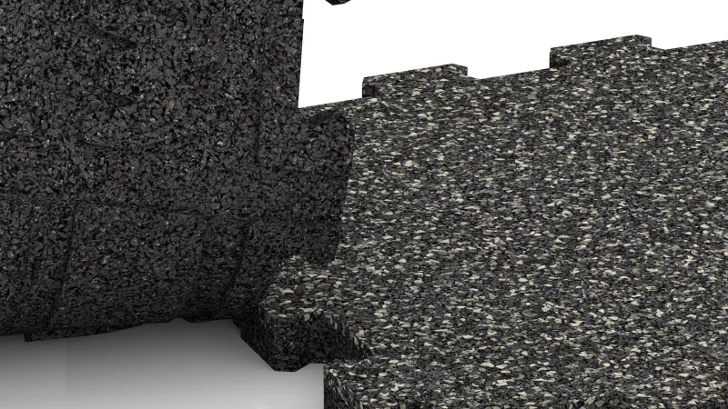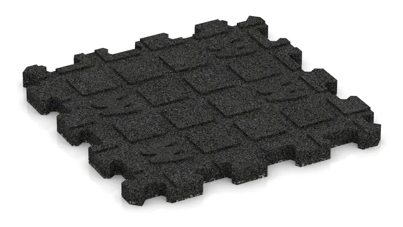 Hver flise består af to lag. Slidlaget er fremstillet af gennemfarvet, giftfrit EPDM-gummigranulat, som er modstandsdygtigt over for klor og UV-stråler og bevarer sin farve i længden. Bærelaget består af sort ELT-gummigranulat fra genbrugte bildæk, hvilket giver elasticitet, stabilitet og stødabsorbering.