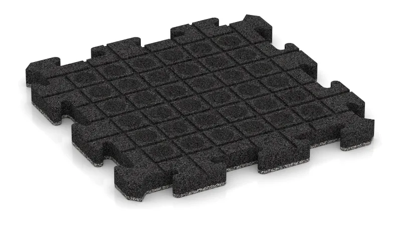 Den formstøbte puslesamling skabes direkte under produktionen og sikrer en nøjagtig pasform. Let afrundede faser giver et harmonisk fugebillede. I naturinspirerede farvedesigns, som består af forskellige EPDM-farvegranulater, bliver fugerne næsten usynlige, og fladen fremstår ensartet og rolig.