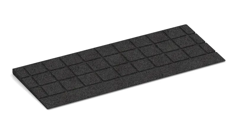 Rampen er fremstillet af gummigranulat bundet med PU. Materialet er stærkt, elastisk og lyddæmpende. Den skridsikre overflade giver et sikkert fodfæste, også når den er våd, og gør det nemt at køre med kørestol, barnevogn eller transportvogn. Samtidig dæmper materialet vibrationer og reducerer støj.